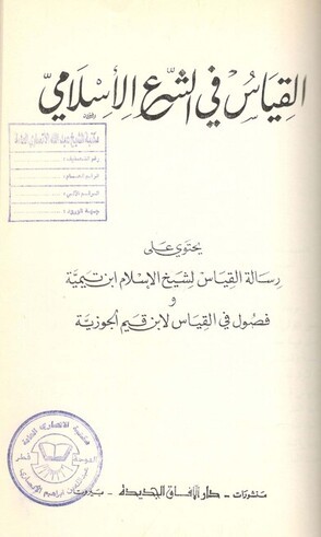 القياس في الشرع الاسلامي: يحتوي على رسالة القياس لابن تيمية وفصول في القياس لابن الجوزية