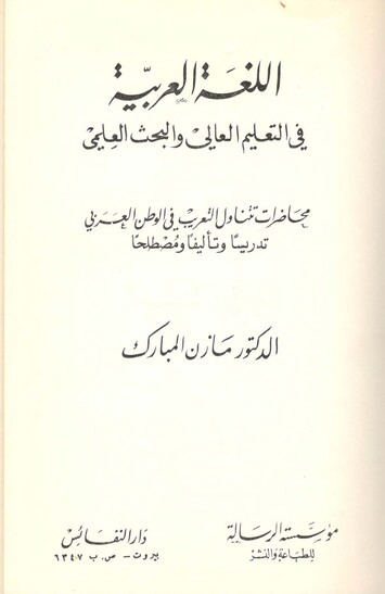 اللغة العربية في التعليم العالي والبحث العلمي : محاضرات تتناول التعريب في الوطن العربي تدريسا وتاليفا ومصطلحا