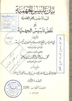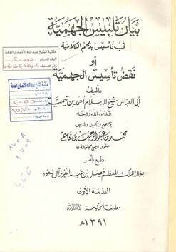 بيان تلبيس الجهمية في تاسيس بدعهم الكلامية أو نقض تاسيس الجهمية