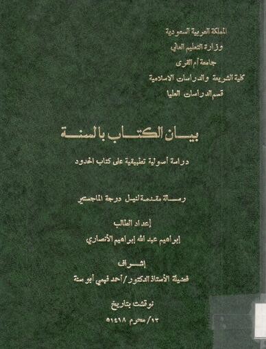 بيان الكتاب بالسنة : دراسة اصولية تطبيقية على كتاب الحدود