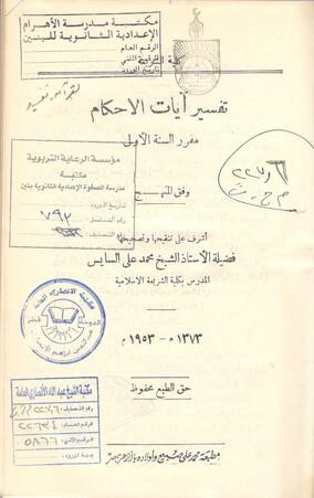 تفسير آيات الاحكام ( مقرر السنة الاولى) وفق المنهج