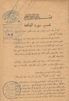 تفسير سورة الفاتحة؛ مجلد معه كتاب (تفسير المعوذتين)؛ وكتاب (سورة الرعد- دراسة ادبية...)