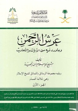 عرش الرحمن وما ورد فيه من الايات والأحاديث، ويليه مجموعة الرسائل والمسائل لشيخ الاسلام وهي ثلاثة اقسام