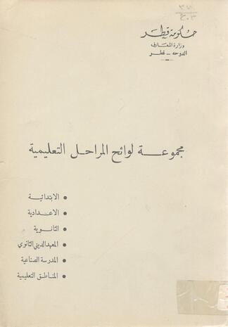 مجموعة لوائح المراحل التعليمية: الابتدائية، الاعدادية ، الثانوية ، المعهد الديني الثانوي، المدرسة الصناعية، المناطق التعليمية