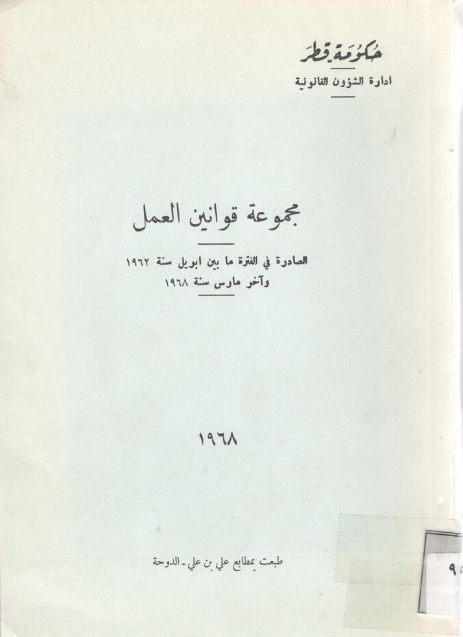 مجموعة قوانين العمل الصادر في الفترة ما بين ابريل سنة 1962 وآخر مارس سنة 1968م