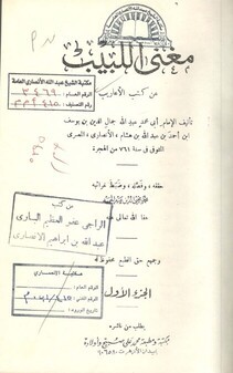 الانصاري المصري . ابي محمد عبد الله جمال الدين بن يوسف بن احمد بن عبد الله بن هشام 708-761هـ